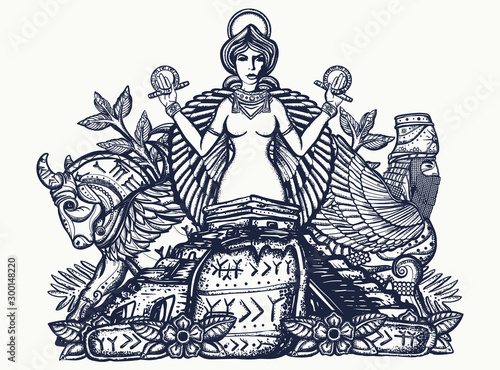 Ancient Sumerian Civilization Tattoo And T Shirt Design Mesopotamian Goddess Ishtar And Ziggurat Cuneiform Writing Assyrian Culture Gilgamesh Legends Middle East History Stock Vector Adobe Stock